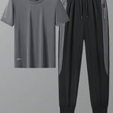 Conjunto de ropa deportiva para hombres, camiseta de manga corta transpirable y de secado rapido para verano, camisas de manga corta ligeras, pantalones de chandal de seda de hielo para deportes, exterior, correr, gimnasio y tiempo libre