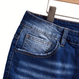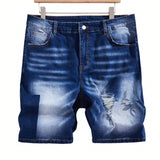 Manfinity legnd shorts de mezclilla ajustados de color azul oscuro con talla grande para hombres, estilo vintage