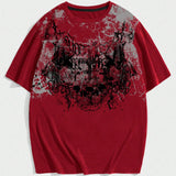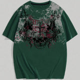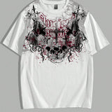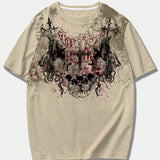 Romwe men goth camiseta de manga corta de cuello redondo casual de verano para hombre con impresion de calavera con letras, escuela
