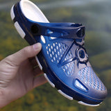 1 par de zuecos ligeros y comodos para hombres, con diseno calado, antideslizantes, para el jardin. sandalias de verano de malla para hombres, para uso casual al aire libre, con suela gruesa y antideslizante, pantuflas de playa