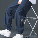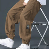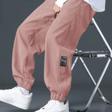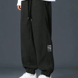 Manfinity hypemode pantalones de chandal informales para hombres con cordon en la cintura y detalles de parches
