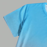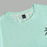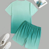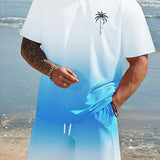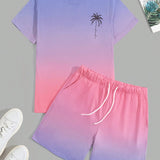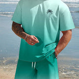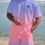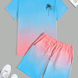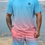 Manfinity rsrt conjunto de camiseta casual de manga corta con cuello redondo y estampado de arboles de palma con gradiente para hombre y pantalones cortos con cintura de cordon para verano