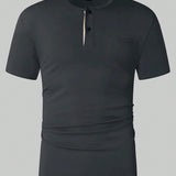 Manfinity homme camiseta casual de manga corta con cuello redondo y botones de media platilla para hombres de talla grande, ideal para verano, estilo de moda para salir