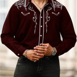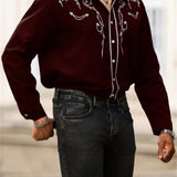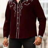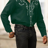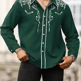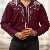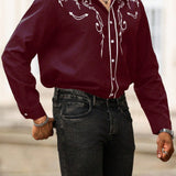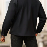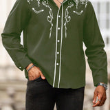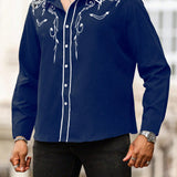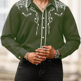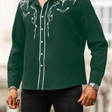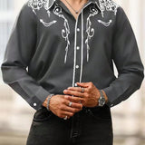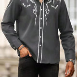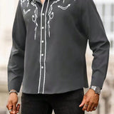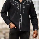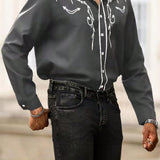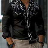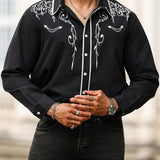 Manfinity homme camisa casual estampada de talla grande para hombre, top occidental minimalista para uso diario, camisa negra con botones de manga larga para graduacion