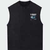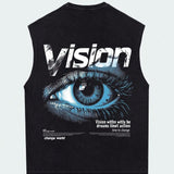 Romwe street life camiseta de tirantes con estampado de ojos lavados vintage para hombre, estilo de alta calle de verano, escuela