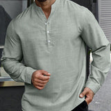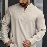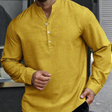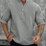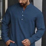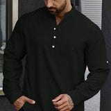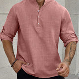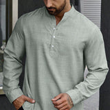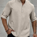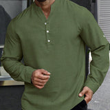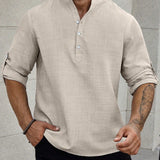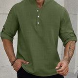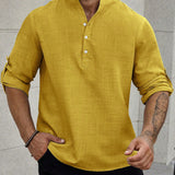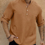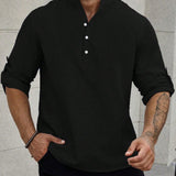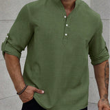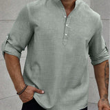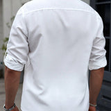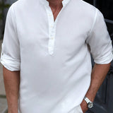 Manfinity homme camisa holgada para hombre con media botonadura y mangas enrollables