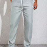 Manfinity hypemode pantalones casuales holgados de hombre con bordado de alfabeto y bolsillos con insercion