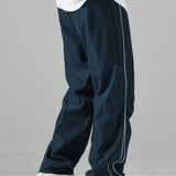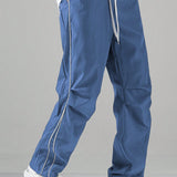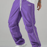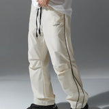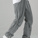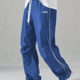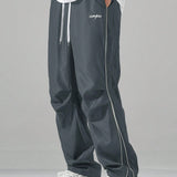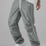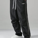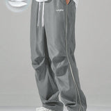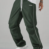 Manfinity hypemode pantalones casuales rectos para hombre con cintura de cordon y estampado de letras y bolsillos