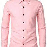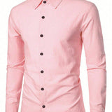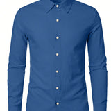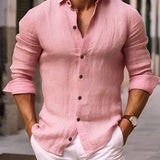 Camisa casual de manga larga de unicolor para hombre, primavera verano
