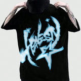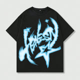 Romwe men street life camiseta de manga corta casual de verano para hombres con estampado de letra y estrella de cinco puntas, cuello redondo, escolar