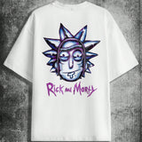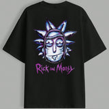 Rick and morty x camiseta holgada para hombre con diseno de personaje de dibujos animados e impresion de letras con diseno de hombros caidos, casual para el verano