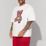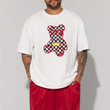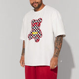 Manfinity cozemod conjunto de 2 piezas para hombre de talla grande con camiseta de manga corta holgada en punto casual con estampado de oso caricaturesco y shorts rectos a juego adecuados para uso diario en verano