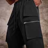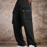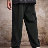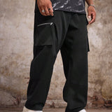 Manfinity roughcore pantalones cargo de talla grande con bolsillos de solapa laterales y cintura ajustable con cordon