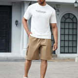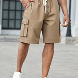 Manfinity casualmax pantalones cortos informales de trabajo de unicolor khaki con bolsillos de talla grande para hombre