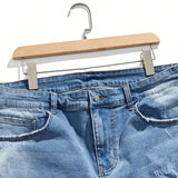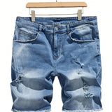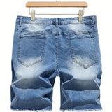 Manfinity legnd pantalones cortos de mezclilla ajustados informales en tono azul claro con desgaste, talla grande para hombre