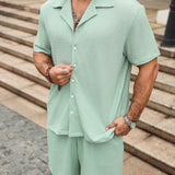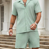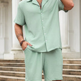 Manfinity homme camisa de botones solida para hombre y pantalones cortos