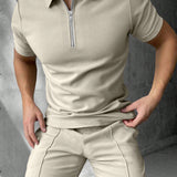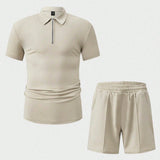 Manfinity homme conjunto de camisa de polo de manga corta y pantalones cortos de unicolor para hombre de talla grande