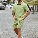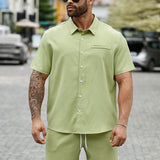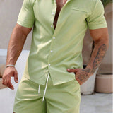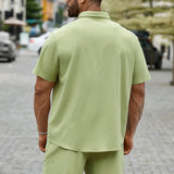 Manfinity homme hombre talla grande camisa solida con botones y pantalones cortos