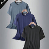 Conjunto de 3 piezas de ropa deportiva casual de verano con estilo de novio para hombres - camiseta de seda de hielo de secado rapido