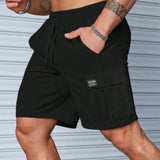 Manfinity homme pantalones cortos para hombre con cordon en la cintura y bolsillos con solapa y detalle de parche de letras