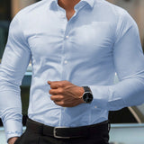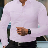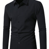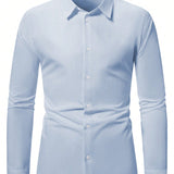 Manfinity mode camisa de manga larga con botones y cuello para hombres, de color solido, para hombres de dinero antiguo, trabajo, esposo, papa
