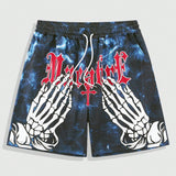 Romwe men pantalones cortos estampados de marmol para hombre con lazo delantero y bolsillos dobles en los lados