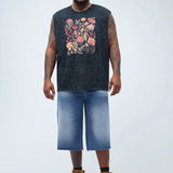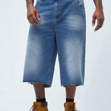 Manfinity emrg shorts de mezclilla de talla grande para hombres con ajuste holgado, bolsillos y dobladillo deshilachado