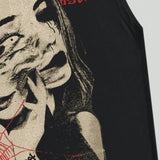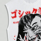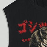 Romwe anime camiseta de tirantes casual de verano con cuello redondo y estampado de retrato, para escuela