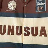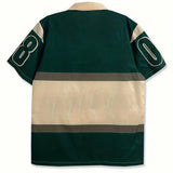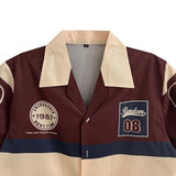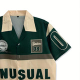 Camisa casual de verano para hombres con estampado de letras, bloqueo de color y cuatro vias de estiramiento