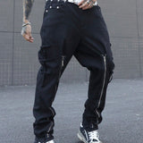 Manfinity emrg jeans de mezclilla casuales negros con diseno de cremallera para hombre