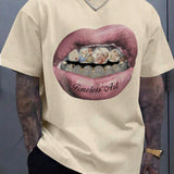 Manfinity zone917 camiseta de manga corta con estampado de labios grafico de estilo vintage, con corte holgado y de alta calle, para salir