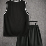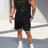 Manfinity sporsity conjunto de 2 piezas para hombre de talla grande y grande tejiendo camiseta sin mangas + pantalones cortos