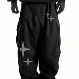 Pantalones cargo de pierna recta con corte amplio para hombre con diseno de estrellas impresas