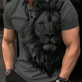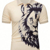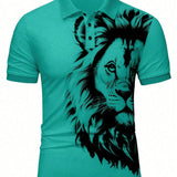Manfinity legnd camisa polo casual de manga corta con estampado de leon para hombre, verano/para el trabajo