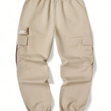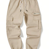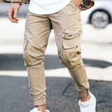 Pantalones de carga para exterior de hombre con bolsillos decorativos y punos elasticos, largos pantalones de moda para otono