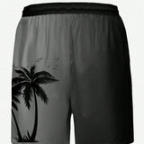 Shorts de talla grande para hombre con gradiente de palmeras en impresion digital 3d para uso casual y al aire libre, cintura con cordon, una sola capa sin forro, para uso diario, vacaciones y ocio.