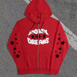 Manfinity homme sudadera con buzos con capucha con cremallera con estampado de letras y estrellas para hombres de talla grande, sudadera casual de manga larga