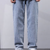 Jeans rectos de hombre lavados de color claro, sencillos y versatiles
