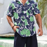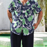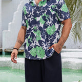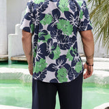 Manfinity rsrt conjunto casual de vacaciones con camisa de manga corta con estampado de plantas tropicales y pantalones cortos para hombres de talla grande
