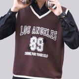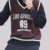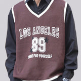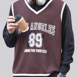 Manfinity emrg chaleco de punto suelto con cuello en v y grafico de carta, informal, para hombre manfinity emrg, para primavera y otono
