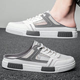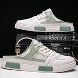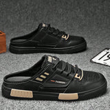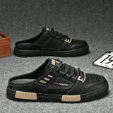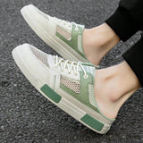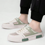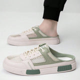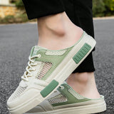 Sandalias casuales de hombre, diapositivas de dedo cerrado transpirables de verano, sandalias planas de moda con cierre deslizante, zapatos de malla calados, mocasines informales con personalidad al aire libre sin talon, zapatos de red de parche,