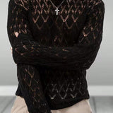 Dauomo sueter de punto casual de cuello redondo con diseno calado, de unicolor, para hombre de talla grande, para primavera y otono