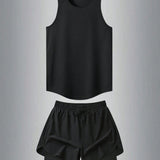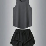 1 conjunto estilo novio conjunto informal de moda para hombres, top sin mangas de cuello redondo y shorts deportivos para exteriores