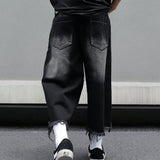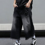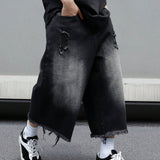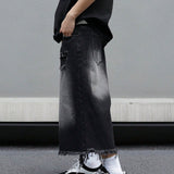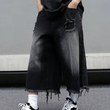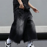 Manfinity emrg pantalones cortos de mezclilla holgados de talla grande para hombres con botones frontales, bolsillos multiples y ribete desgastado, pantalones cortos de color negro, un regalo ideal para el esposo o novio