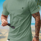 Manfinity vacaylife camiseta de manga corta redonda de canamo ligera y transpirable con estampado de palmera casual para vacaciones en la playa, edicion para el dia del padre, dia de la madre, dias festivos