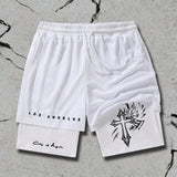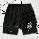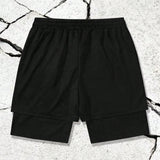 Manfinity legnd pantalones cortos de verano con cordon, de doble capa, con estampado de letra y cruz
