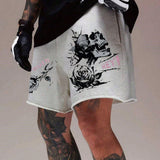 Pantalones cortos de verano informales con estampado floral, cintura elastica y bolsillos, talla grande para hombres