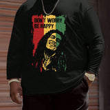 Camiseta de manga larga con cuello redondo para hombres de talla grande, tops de manga larga casuales de primavera y otono con estampado de bandera de