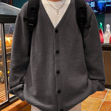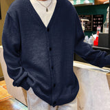 Manfinity chaqueta de punto casual de un solo abotonadura de unicolor para hombre