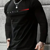 Camiseta de manga larga con estampado de letra casual de talla grande para hombre, primavera y otono
